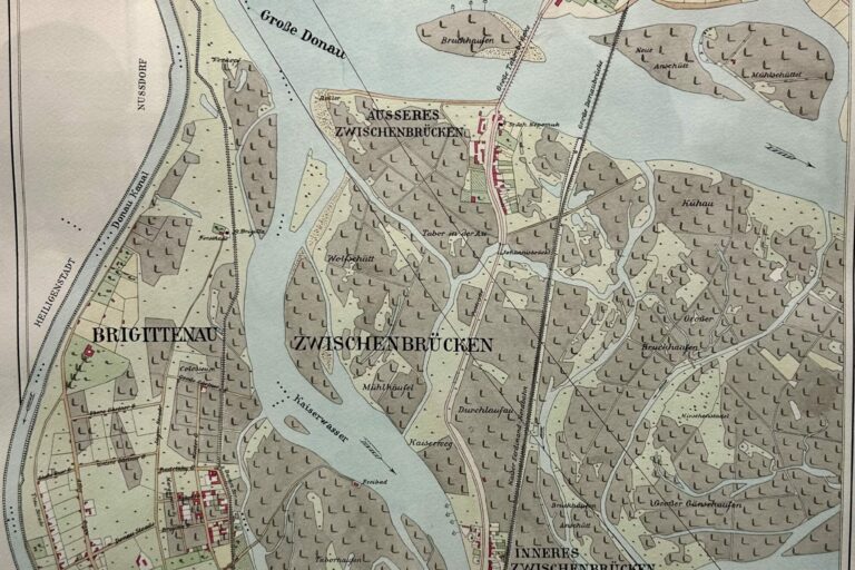 Wie zwischen zwei Donaubrücken bei Wien ein eigene Gemeinde entstand. Und wie diese durch die Flussregulierung wieder in der Donau verschwand.