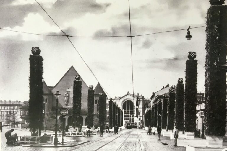 Wo heute ein deutscher Diskonter und ein jüdischer Supermarkt ihre Waren anbieten, stand bis in die letzten Kriegstage eine Reitschule mit bemerkenswerter Architektur.