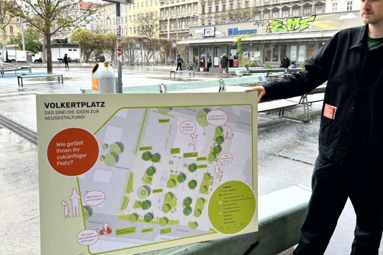 Er ist ein wichtiger Grätzeltreffpunkt und gleichzeitig ein Hitzepol in der Leopoldstadt. Nun soll der Volkertplatz durch mehr Bäume und Wasserspiele kühler und attraktiver werden.