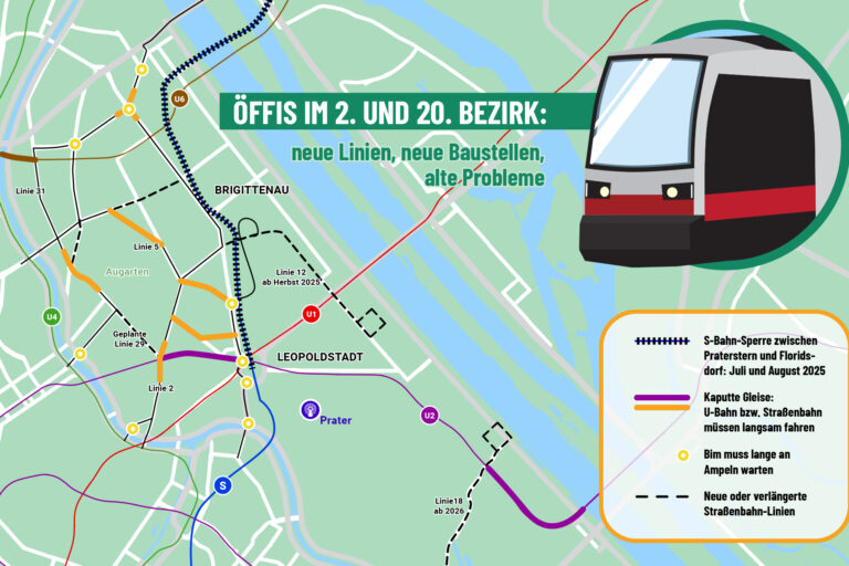 Demnächst bekommen Leopoldstadt und Brigittenau eine neue Straßenbahn. Gleichzeitig werden bestehende Linien immer langsamer. Und nun kommen neue Baustellen hinzu. Eine Übersicht.
