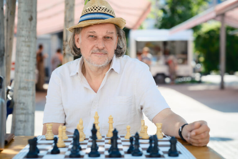 An Samstagen belebt der Psychoanalytiker Klaus Doblhammer, 58, den Volkertmarkt mit seiner Schachstation hinter dem Café Nelke.