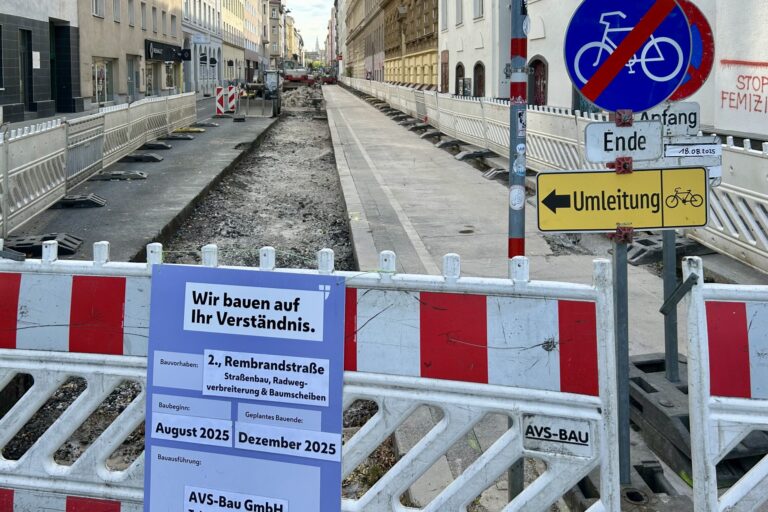 Die wichtige Verbindungsstraße vom Augarten zum Donaukanal bekommt einen breiteren Radweg und Bäume. Die Umbauarbeiten dauern bis Dezember.