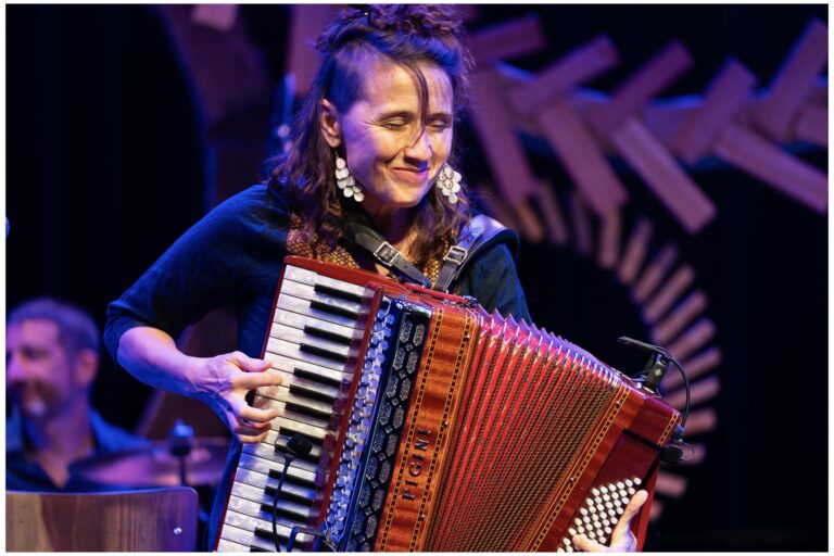 Die Kulturarbeiterin und Musikerin Franziska Hatz, 46, beamt mit ihrem Akkordeon tonnenweise Energie aus der Brigittenau in alle Welt.