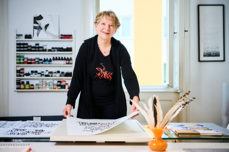 Die Kalligrafin, Schriftkünstlerin und Designerin Claudia Dzengel, 57, war schon als Kind besonders zufrieden, wenn sie ein Wort dreißigmal schreiben musste.
