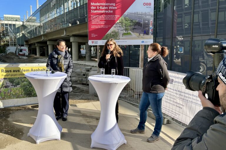 Der Umbau des Maria-Restituta-Platzes soll den wichtigsten Verkehrsknotenpunkt der Brigittenau als Aufenthaltsort aufwerten.