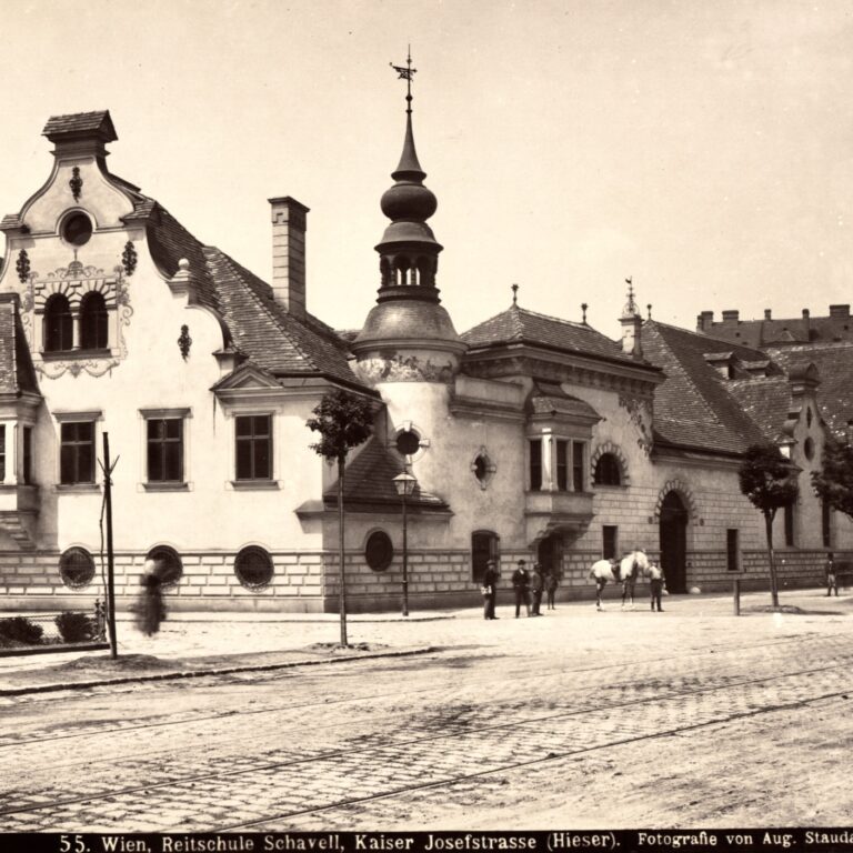 Wo heute ein deutscher Diskonter und ein jüdischer Supermarkt ihre Waren anbieten, stand bis in die letzten Kriegstage eine Reitschule mit bemerkenswerter Architektur.