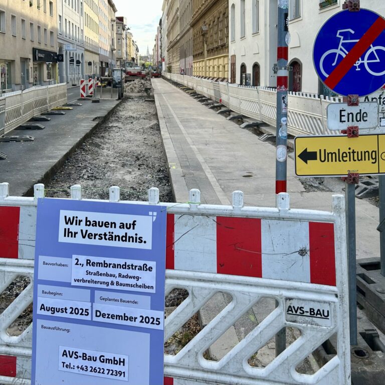 Die wichtige Verbindungsstraße vom Augarten zum Donaukanal bekommt einen breiteren Radweg und Bäume. Die Umbauarbeiten dauern bis Dezember.