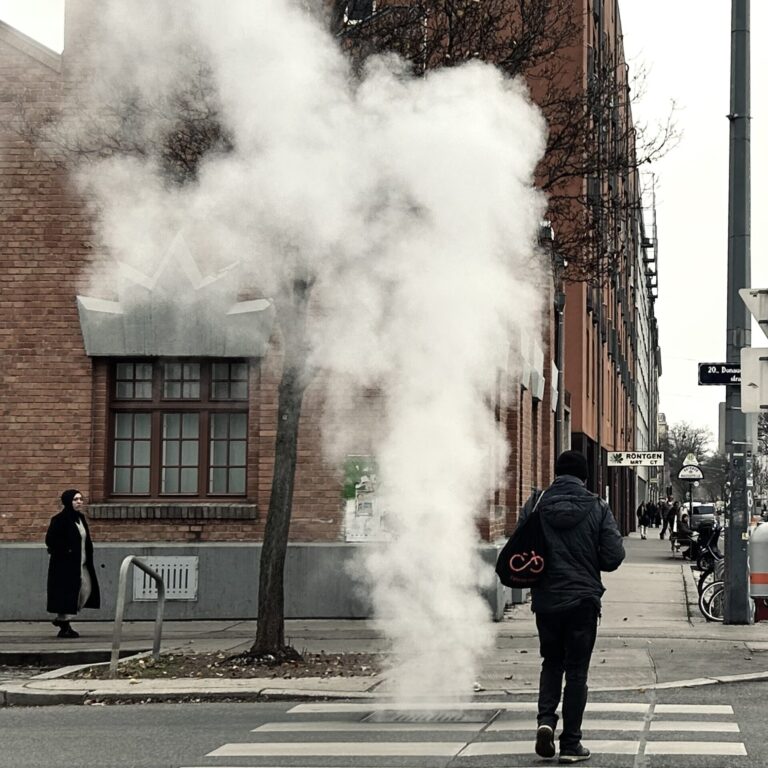 Leserbild aus der Donaueschingen Straße: Eine lecke Fernwärmeleitung erinnert an bekannte Fotos aus den Straßen von New York.