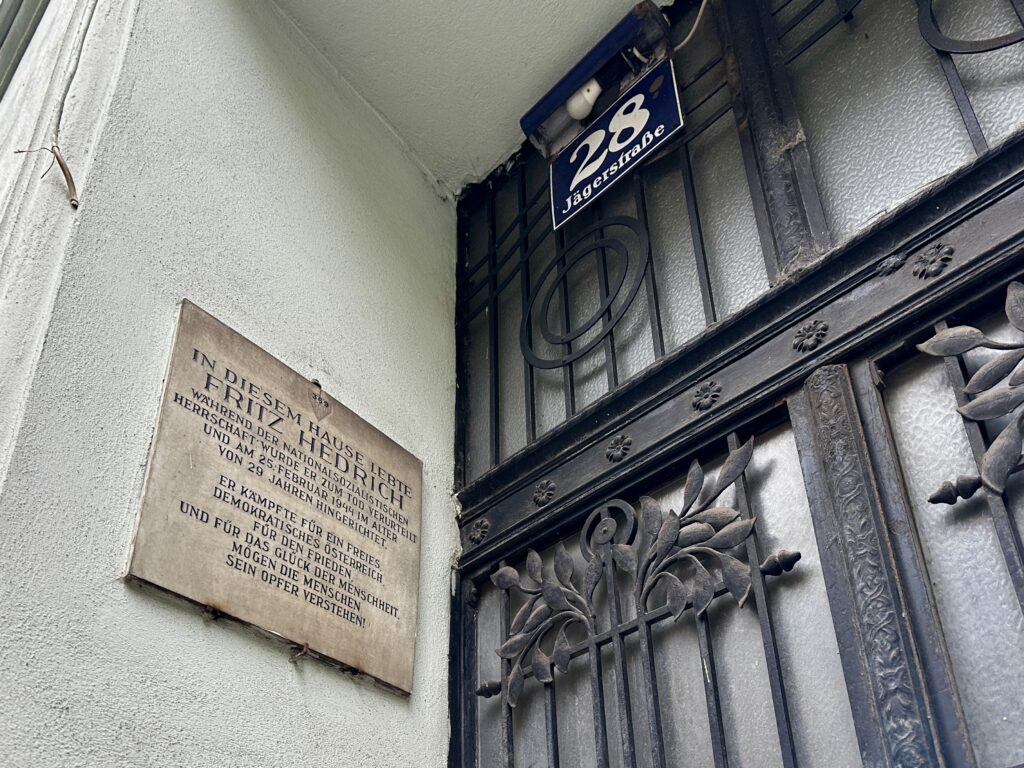 Fritz Hedrich wurde gemeinsam mit einer Genossin am 30. September 1943 verurteilt und im Februar 1944 enthauptet. Einen Tag vor seiner Hinrichtung am 25. Februar 1944 konnte der 29jährige Hedrich auf der Rückseite eines Fotos, das seine Kinder Liese und Edi zeigt, diesen noch eine Nachricht hinterlassen: „Meine lieben Haserln! In meinen letzten Stunden schau ich im Geist in eure lieben Guckerln und drücke euch an meine Brust. Seid eurer Mama und eurer lieben Oma recht brave Kinder und Enkel. Denkt öfters an mich, und wenn es euch im Leben einmal hart geht, dann haltet den Kopf hoch! Die paar Jahre, die ich mit euch und eurer lieben Mama verlebt habe, waren die schönsten in meinem Leben. Die Liebe zu den Menschen, zur schönen Welt war mein Leitmotiv. Seid nie verbittert. Das Leben ist nur schön durch Liebe! Euer Papa!“