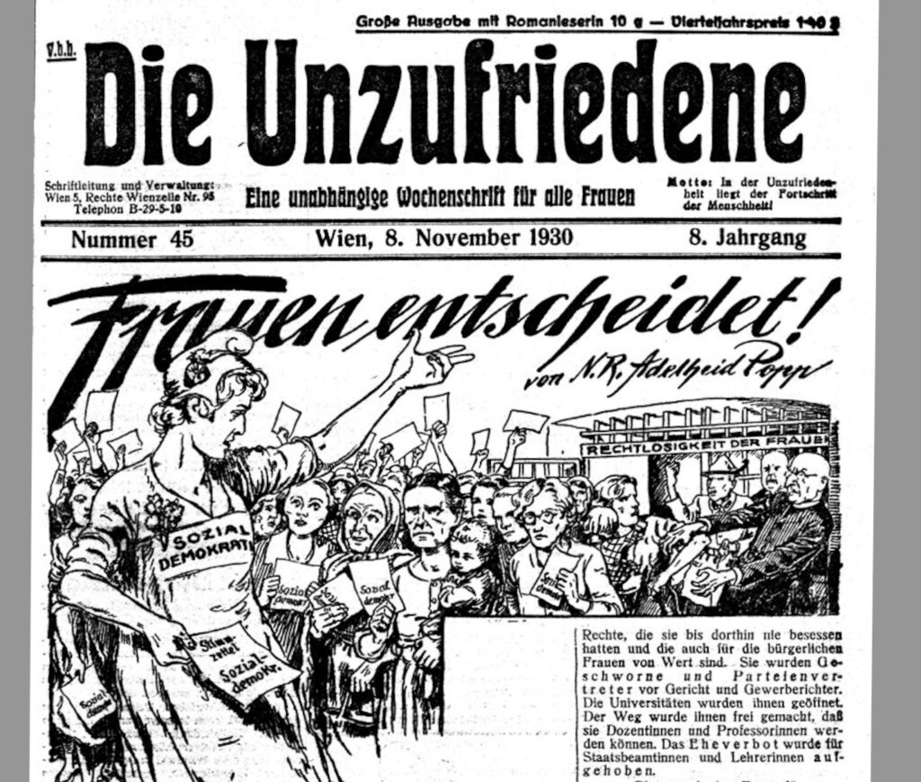 1923 konzipiert Winter unter dem Dach der Arbeiter-Zeitung eine eigene Frauenzeitschrift, „Die Unzufriedene“. Das Blatt ist erfolgreich und wird als zentrales Frauenorgan der sozialdemokratischen Bewegung bis Februar 1934 weitergeführt. Das Verbot der Partei und die Errichtung der autoritären Diktatur erlebte Winter dann schon aus der Distanz: Am Tag nach der Niederschlagung des Arbeiteraufstands im Februar 1934 verließ er Wien in Richtung USA.