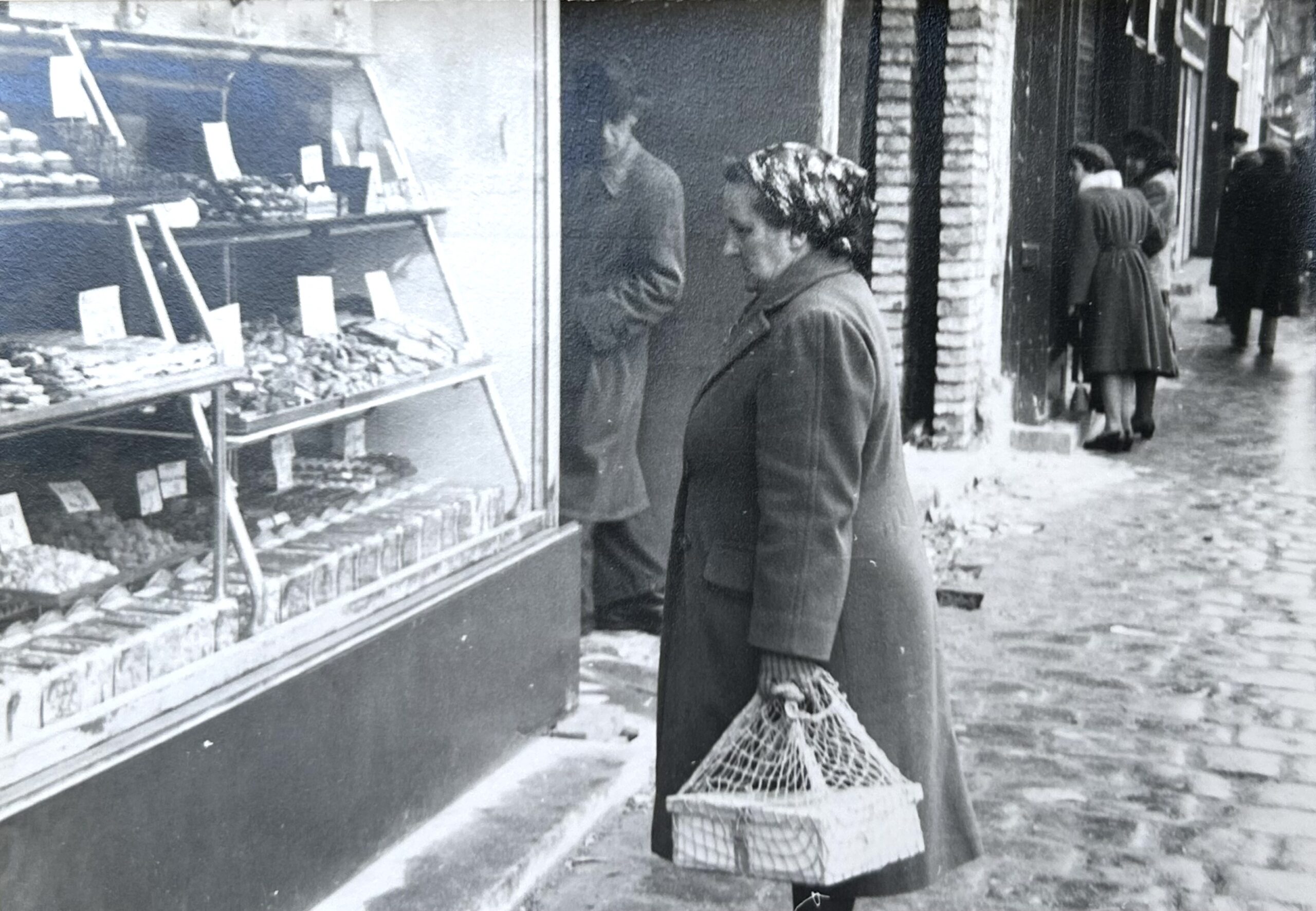 In den Trümmern rund um den Praterstern entstand bald nach Kriegsende neues Leben. Die Ankerbrotfabrik in Favoriten buk wieder Brot, das wurde dann in Elektrokarren bis in den 2. Bezirk geliefert. In der Heinestraße sperrte ein Greißler auf und daneben eine Konditorei. Herbert Grünwald fotografierte die Greißlerin und Passanten, die in der Auslage Mehlspeisen bestaunten, die sie sich aber vermutlich nicht leisten konnten. Auch im ausgebrannten Wurstelprater wurden bald wieder ein Autodrom und eine Geisterbahn in Betrieb genommen.