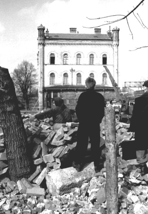 Etwas entfernt stand in der Nordbahnstraße nach dem Krieg noch der alte, schwer beschädigte Nordbahnhof. Grünwald fotografierte die ersten Abrissarbeiten. Der letzte Trakt dieses beeindruckenden, im neogotischen Stil errichteten Bahnhofs wurde erst 1965 gesprengt.
