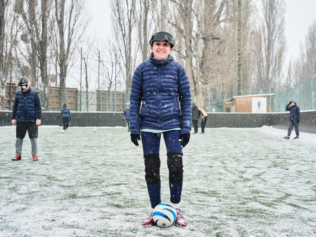 Knapp über Null Grad zeigt das Thermometer, die Sonne versteckt sich hinter grauen Wolken. Im Hintergrund rauschen die Autos der Donaukanal Straße. In kurzen Hosen stapfen einige Spieler:innen über das verschneite Areal. Es ist der Trainingsauftakt des ersten österreichischen Blindenfußballteams. Und Bettina ist dessen Kapitänin. „Es waren vier Wochen Pause. Das war definitiv zu lang!“
