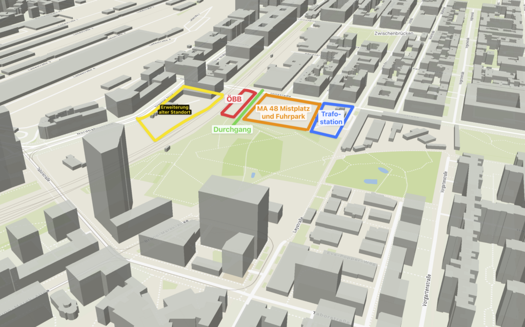 Gestritten wird über den Standort des Mistplatzes schon seit Jahren. 2020 sperrte die für Abfallwirtschaft zuständige Magistratsabteilung 48 den Mistplatz „Zwischenbrücken“ an der Dresdner Straße wegen der Pandemie zu – und danach nie wieder auf. Gerüchte über einen geplanten neuen Standort zwischen der Freien Mitte des Nordbahnviertels und der Innstraße tauchten auf (Zwischenbrücken berichtete). Der wurde dann auch im Programm der Stadtkoalition als „Grätzlmistplatz“ fixiert. Mehr war bisher dazu aber nicht bekannt.