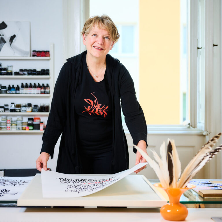 Die Kalligrafin, Schriftkünstlerin und Designerin Claudia Dzengel, 57, war schon als Kind besonders zufrieden, wenn sie ein Wort dreißigmal schreiben musste.